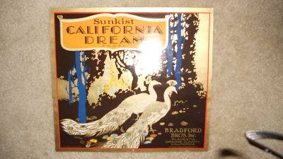 Title (ebay affiliate link): Sunkist California Dream Original Orange Crate Label-Copyright 1928-Peacocks