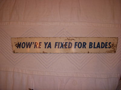 Antique " How're ya fixed for blades " original metal advertising sign old