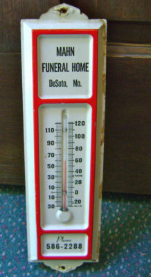 Vintage MAHN FUNERAL HOME Metal THERMOMETER...Missouri