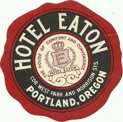 HOTEL EATON luggage PORTLAND label (OREGON)