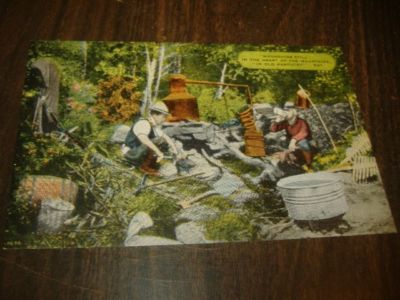 Title (ebay affiliate link): c.1940 'MOONSHINE STILL" In The HEART Of KENTUCKY Natural Color Postcard UN-USED