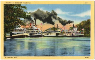 Title (ebay affiliate link): USA Linen Postcard - Steamboat Races on a California River