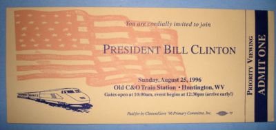 Title (ebay affiliate link): 8/25/1996 Invitation President Bill Clinton Priority Viewing Huntington, WV