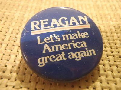 Title (ebay affiliate link): Ronald Reagan Politcal Button/pIN " REAGAN, Let's Make America Great Again".