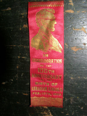 Title (ebay affiliate link): Antique 1909 Pinback Ribbon Abraham Lincoln 100th Anniversary Birth
