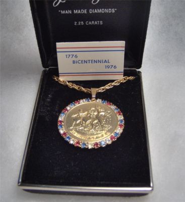 Title (ebay affiliate link): VINTAGE 1976 USA PATRIOTIC BICENTENNIAL Necklace - MIB