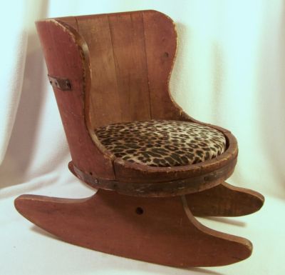 Title (ebay affiliate link): RARE Unique Vintage Folk Art Child or Doll Whiskey Barrel Rocking Chair Rocker