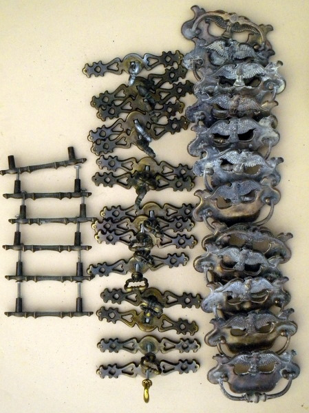 33 ANTIQUE BRASS HANDLE FURNITURE HARDWARE drawer pulls