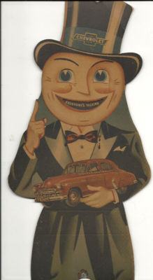 1949 Chevrolet advertisement Popeye, the Ventriloquist dummy, winks