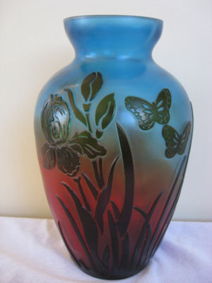 Blue Cameo Glass Vase with Butterflies