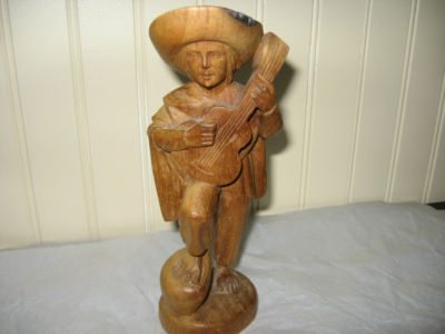 CARVED WOOD FIGURINE MAN WITH GUITAR