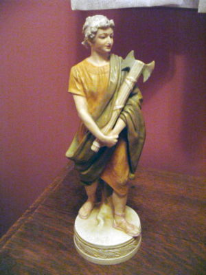 Title (ebay affiliate link): ROYAL DUX FIGURINE - AXE BEARER - NUMBER 697 - PINK TRIANGLE - 1912-1918