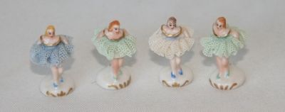 Vintage Irish Dresden Porcelain Lace Ballerina Miniature Figurines (Set of 4)