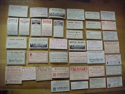 Title (ebay affiliate link): 40+OLD PHARMACY-POISON-NARCODIC-MEDICINE BOTTLE LABELS=