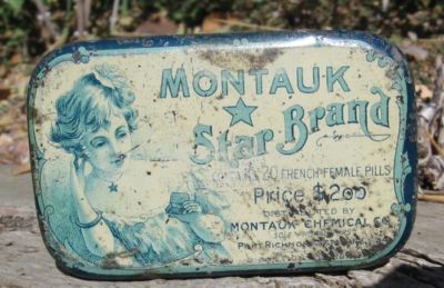 Title (ebay affiliate link): Unusual Montauk Star Brand Female Pills Tin, c. 1900
