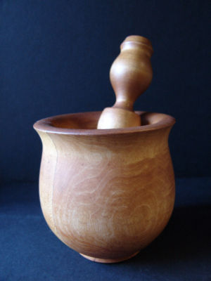VINTAGE WOODEN MORTAR AND PESTLE