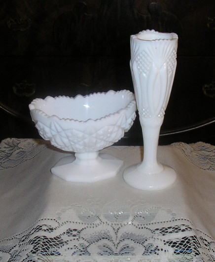 Two Lovely Milk Items Glass Items Bud Vase & Candy Dish