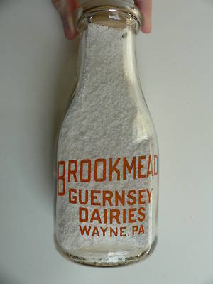 round pyro milk bottle: Brookmead Guernsey, Wayne, Pa