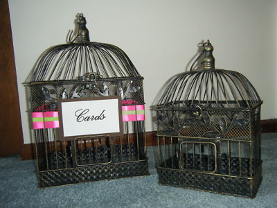 2 Antique Style Bird Cages (17" & 13" tall) Wedding Card Holders