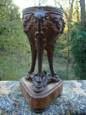VINTAGE SPELTER WARE METAL URN/VASE FIGURAL RAMS' HEADS - NO COVER