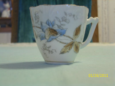 Title (ebay affiliate link): MINIATURE TEA CUP SCALLOPED EDGE GOLD TRIM BLUE FLOWER BROWN STEM 2 IN. TALL