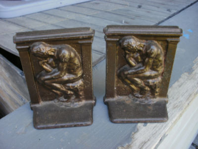 THE THINKER BOOKENDS BROONZE? WHITE METAL? VERY NICE