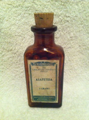 Title (ebay affiliate link): Burroughs Bros Asafetida "Devils Dung" Cork top Brown Glass Medicne Bottle FULL