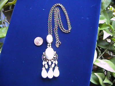 GORGEOUS VINTAGE LES BERNARD MILK GLASS NECKLACE