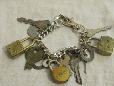 Title (ebay affiliate link): Charm Bracelet,Silvertone Chain,Vintage-Mod Keys&Locks,Varied Metals