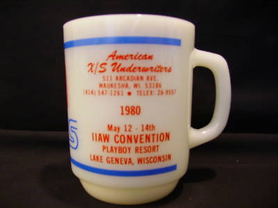 1980 Fire King PLAYBOY Convention Milk Glass Mug Cup