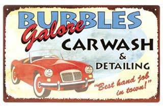 Bubbles Carwash & Detailing Best Hand Job in Town Funny Tin Sign Ad Garage Decor