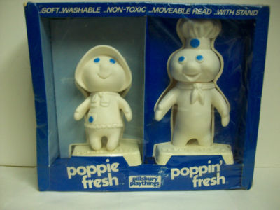 Title (ebay affiliate link): VINTAGE Poppie & Poppin Fresh Pillsbury 1970's Movable Heads With Stands MIB