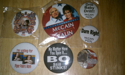 Title (ebay affiliate link): 7 NEW 2008 REPUBLICAN CAMPAIGN MCCAIN PALIN BUTTONS LOT