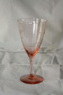 Title (ebay affiliate link): VINTAGE 7" ELEGANT ETCHED FLORAL PATTERN PINK DEPRESSION WINE GOBLET GLASS