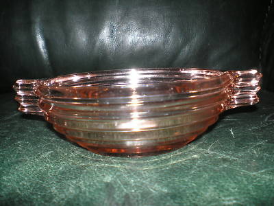 Title (ebay affiliate link): Pink Depression glass bowl w/ side handles Bee Hive