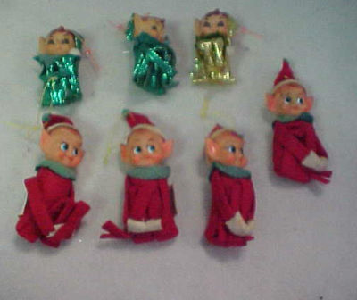 Title (ebay affiliate link): Lot of 7 Vintage Knee Hugger Ornaments Elves Pixies Red Felt, Green, Gold, Japan