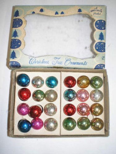 Title (ebay affiliate link): 24 Vintage Miniature Feather tree Mercury Shiny Brite glass ornaments in box