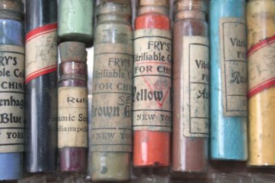 Title (ebay affiliate link): Rare Lot of 16 Primitive Glass corked Vials of Vitrifiable Color Powder Paint