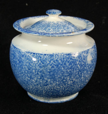 Title (ebay affiliate link): Great Antique Spongeware, Spatterware Covered Sugar Bowl