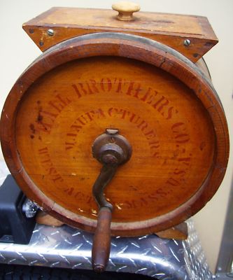 vtg wooden BUTTER CHURN table barrell Hall Brothers Acton Mass