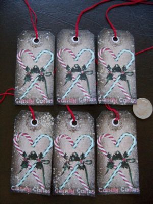 Title (ebay affiliate link): COUNTRY CHRISTMAS primitive tags GIFT TAGS christmas CANDY CANES prim christmas