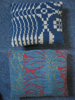 Title (ebay affiliate link): 2 Different Small Blue Antique Coverlet Pillows Country Primitive Plaid Back