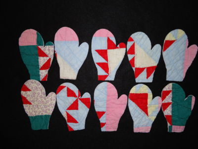 Title (ebay affiliate link): 10 PRIMITIVE ANTIQUE FOLK ART CUTTER QUILT CHRISTMAS MITTENS
