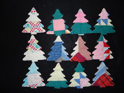 12 PRIMITIVE ANTIQUE FOLK ART CUTTER QUILT CHRISTMAS TREES