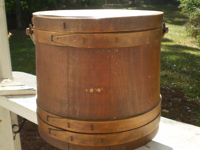 Vintage Large Firkin W/Lid, Wooden Bucket, Handled, Oak, Pine?, Finger Bands