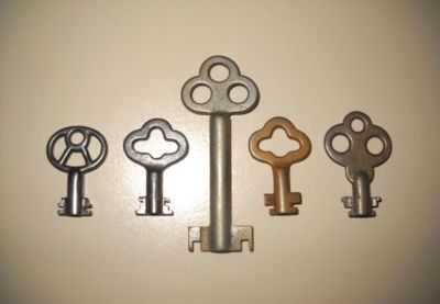 5 - VINTAGE FANCY BOW BARREL LEVER PADLOCK KEYS