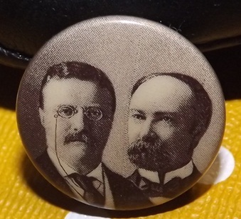1904 ORIGINAL TEDDY ROOSEVELT - FAIRBANKS 7/8" PINBACK WHITEHEAD & HOAG PAPER