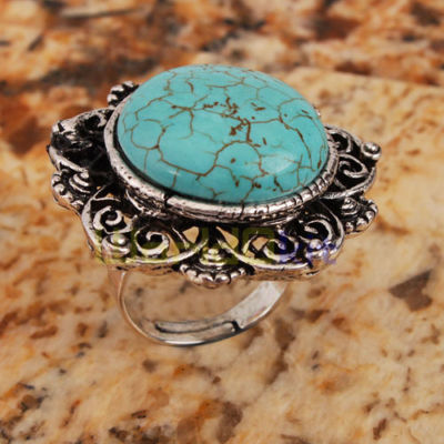 Title (ebay affiliate link): Charming Plum Flower Style Turquoise Adjustable antique silver-plated Rings