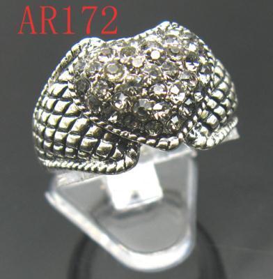 Antique Silver Clear RhinestoneCrystal Adjustable Ring AR172