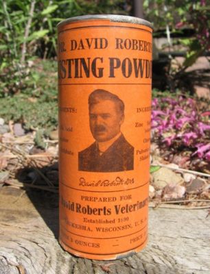 Title (ebay affiliate link): Early Veterinary Tin, Dr. Roberts Dusting Powder, Waukesha, Wisconsin